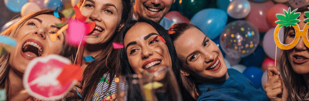 Los props interactivos, como carteles con frases divertidas, máscaras temáticas y complementos personalizados, fomentan la participación activa de los invitados y generan un ambiente lúdico y distendido en la celebración.